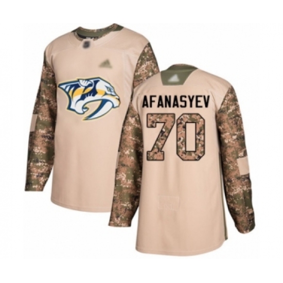 >Men's Nashville Predators #70 Egor Afanasyev Authentic Camo Veterans Day Practice Hockey Jersey
