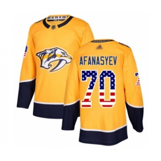 >Men's Nashville Predators #70 Egor Afanasyev Authentic Gold USA Flag Fashion Hockey Jersey
