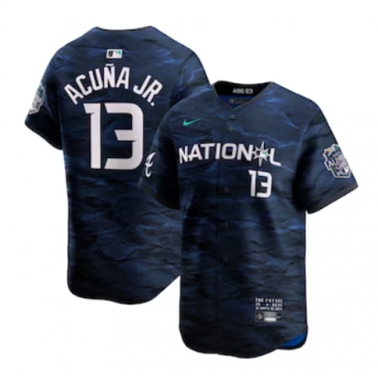 >Men's National League #13 Ronald Acuña Jr. Nike Royal 2023 MLB All-Star Game Limited Player Jersey
