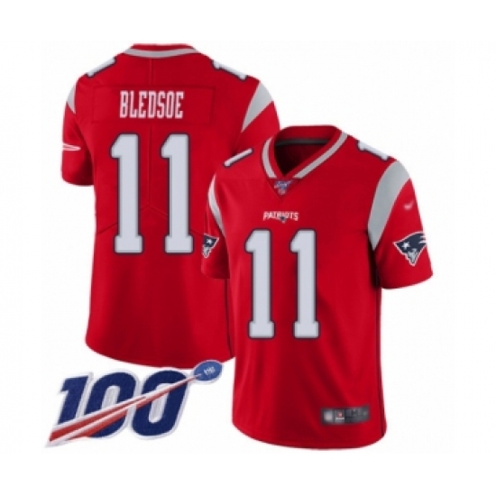 >Men's New England Patriots #11 Drew Bledsoe Limited Red Inverted Legend 100th Season Football Jersey