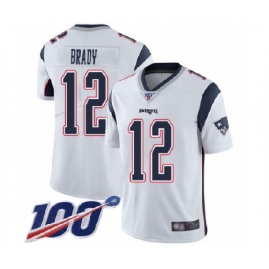Men's New England Patriots #12 Tom Brady White Vapor Untouchable Limited Player 100th Season Football Jersey