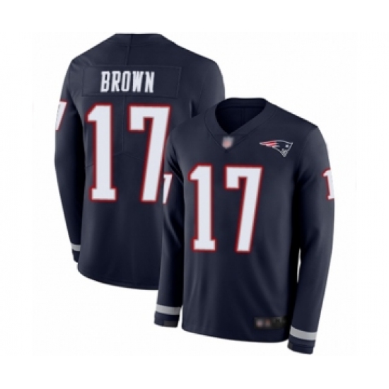 >Men's New England Patriots #17 Antonio Brown Limited Navy Blue Therma Long Sleeve Football Jersey