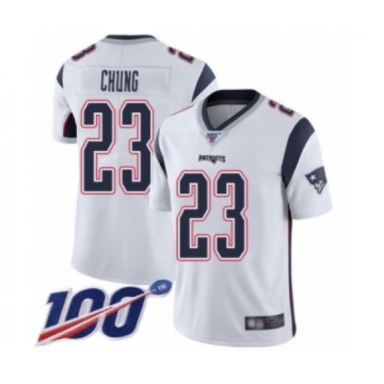 Men's New England Patriots #23 Patrick Chung White Vapor Untouchable Limited Player 100th Season Football Jersey