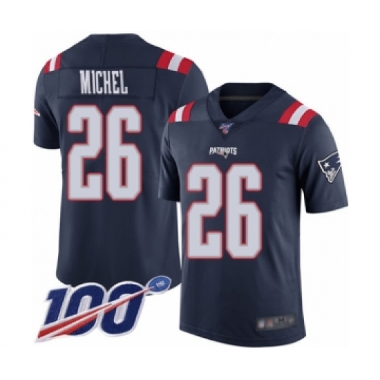 >Men's New England Patriots #26 Sony Michel Limited Navy Blue Rush Vapor Untouchable 100th Season Football Jersey