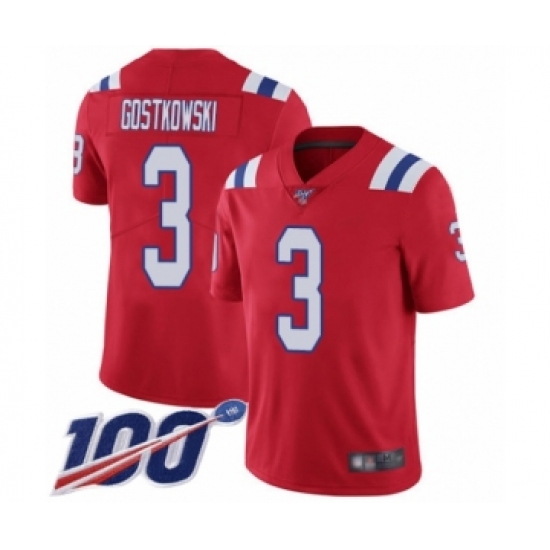 Men's New England Patriots #3 Stephen Gostkowski Red Alternate Vapor Untouchable Limited Player 100th Season Football Jersey