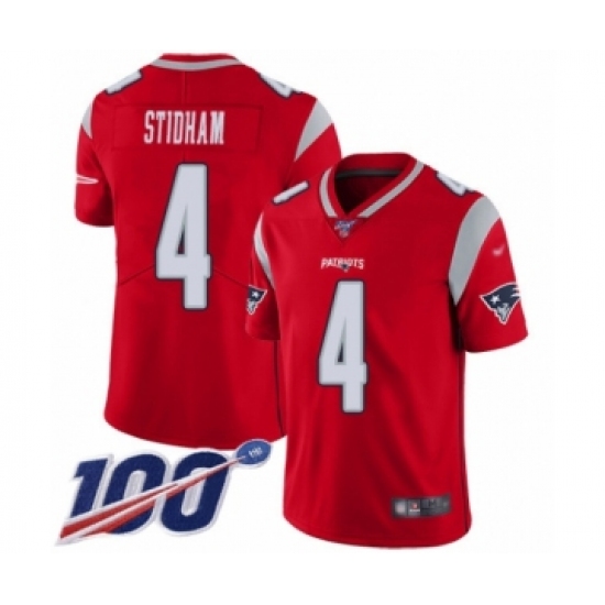 Men's New England Patriots #4 Jarrett Stidham Limited Red Inverted Legend 100th Season Football Jersey