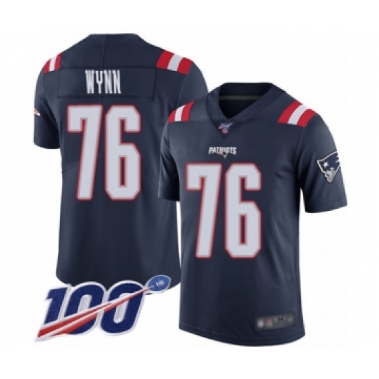 Men's New England Patriots #76 Isaiah Wynn Limited Navy Blue Rush Vapor Untouchable 100th Season Football Jersey