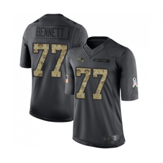 >Men's New England Patriots #77 Michael Bennett Limited Black 2016 Salute to Service Football Jersey