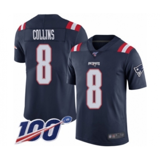 >Men's New England Patriots #8 Jamie Collins Limited Navy Blue Rush Vapor Untouchable 100th Season Football Jersey
