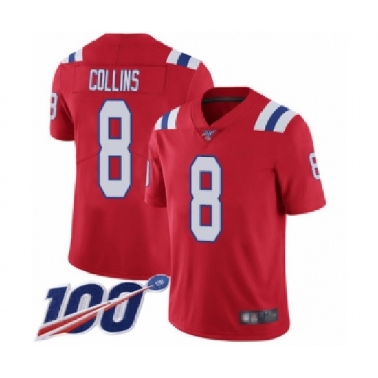 Men's New England Patriots #8 Jamie Collins Red Alternate Vapor Untouchable Limited Player 100th Season Football Jersey