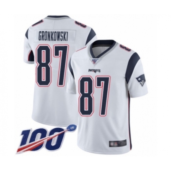 Men's New England Patriots #87 Rob Gronkowski White Vapor Untouchable Limited Player 100th Season Football Jersey