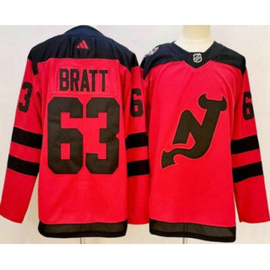 Men's Adidas New Jersey Devils #63 Jesper Bratt Premier Red Home NHL Jersey