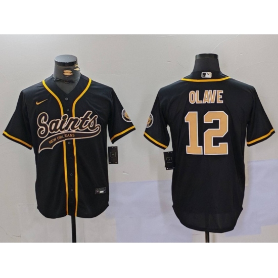 >Men's New Orleans Saints #12 Chris Olave Black Cool Base Stitched Baseball Jersey