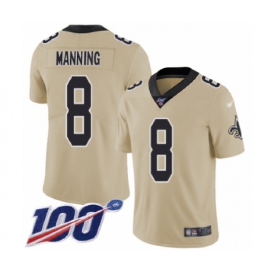 Men's New Orleans Saints #8 Archie Manning Limited Gold Inverted Legend 100th Season Football Jersey