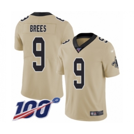 Men's New Orleans Saints #9 Drew Brees Limited Gold Inverted Legend 100th Season Football Jersey