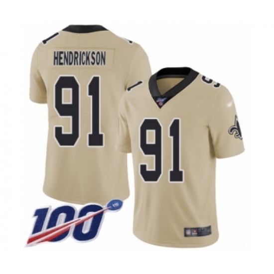 Men's New Orleans Saints #91 Trey Hendrickson Limited Gold Inverted Legend 100th Season Football Jersey
