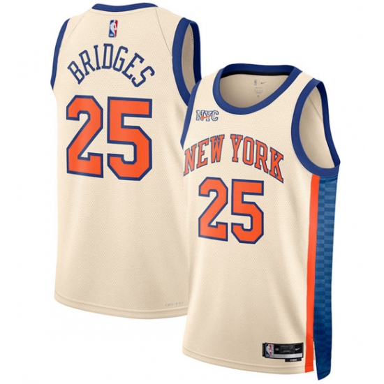 >Men's New Yok Knicks #25 Mikal Bridges Cream 2025-26 City Edition Swingman Stitched Basketball Jersey