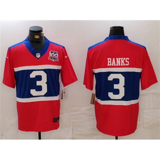 >Men's New York Giants #3 Deonte Banks Century Red 100TH Season Commemorative Limited Football Stitched Jersey