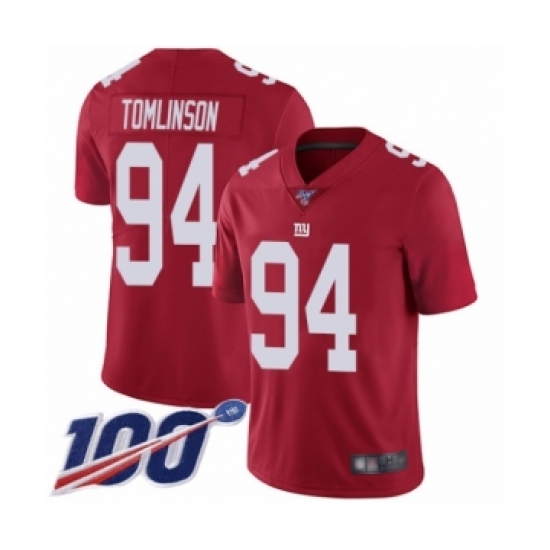 >Men's New York Giants #94 Dalvin Tomlinson Red Limited Red Inverted Legend 100th Season Football Jersey
