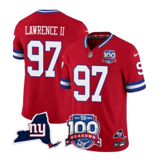 Men's New York Giants #97 Dexter Lawrence II Century Red 100TH Season Commemorative Limited Football Stitched Jersey