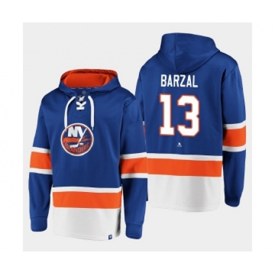 >Men's New York Islanders #13 Mathew Barzal Royal Ageless Must-Have Lace-Up Pullover Hoodie