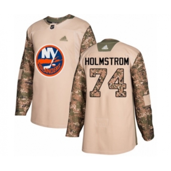 >Men's New York Islanders #74 Simon Holmstrom Authentic Camo Veterans Day Practice Hockey Jersey