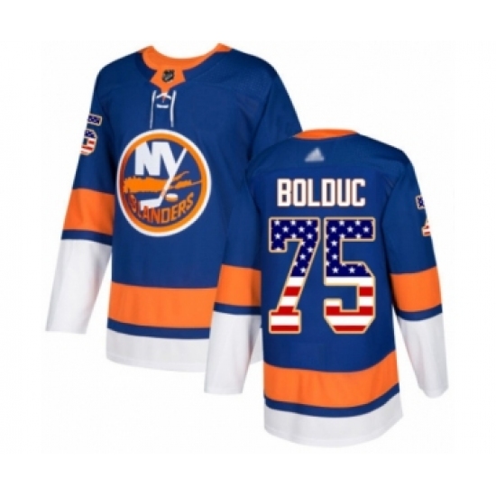 >Men's New York Islanders #75 Samuel Bolduc Authentic Royal Blue USA Flag Fashion Hockey Jersey