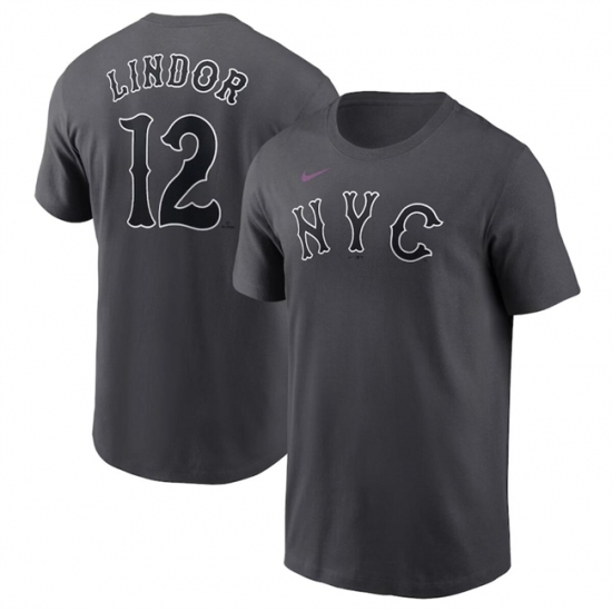Men's New York Mets #12 Francisco Lindor Graphite 2024 City Connect Fuse Name & Number T-Shirt
