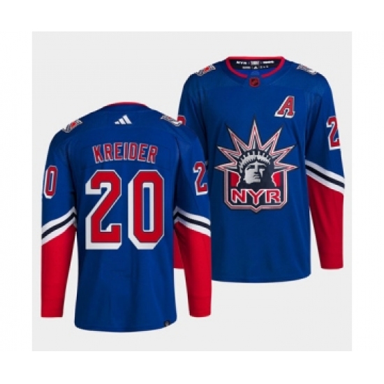 >Men's New York Rangers #20 Chris Kreider Blue 2022 Reverse Retro Stitched Jersey