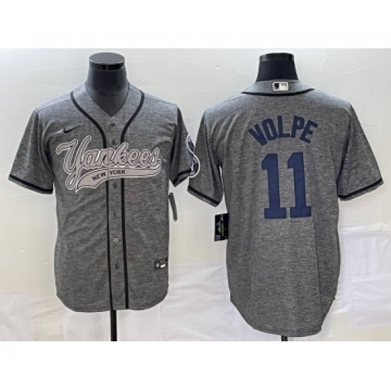 >Men's New York Yankees #11 Anthony Volpe Grey Gridiron Cool Base Stitched Baseball Jersey