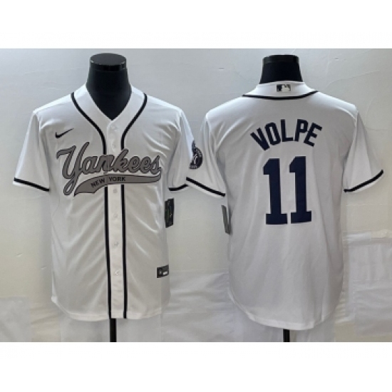 >Men's New York Yankees #11 Anthony Volpe White Cool Base Stitched Baseball Jersey