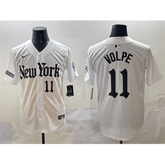 >Men's New York Yankees #11 Anthony Volpe White 'Gothic Legacy Edition' Vapor Premier Limited Stitched Baseball Jersey