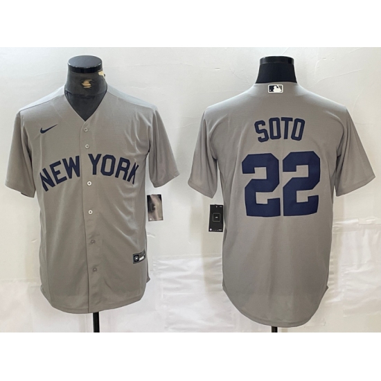 Men's New York Yankees #22 Juan Soto 2021 Grey Field of Dreams Cool Base Stitched Baseball Jersey