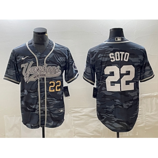 >Men's New York Yankees #22 Juan Soto Number Grey Camo Cool Base Stitched Baseball Jersey