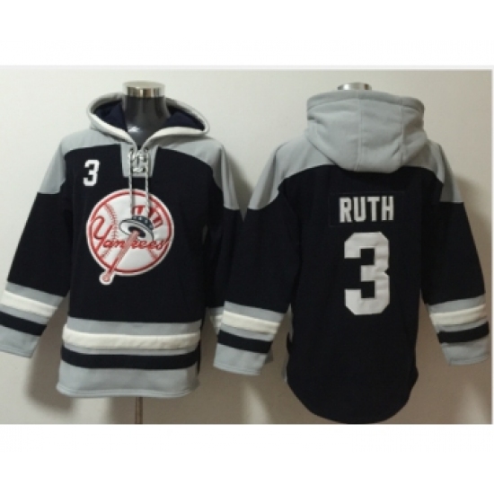 >Men's New York Yankees #3 Babe Ruth Navy Blue Ageless Must Have Lace Up Pullover Hoodie