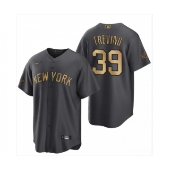 >Men's New York Yankees #39 Jose Trevino Charcoal 2022 All-Star Cool Base Stitched Baseball Jersey