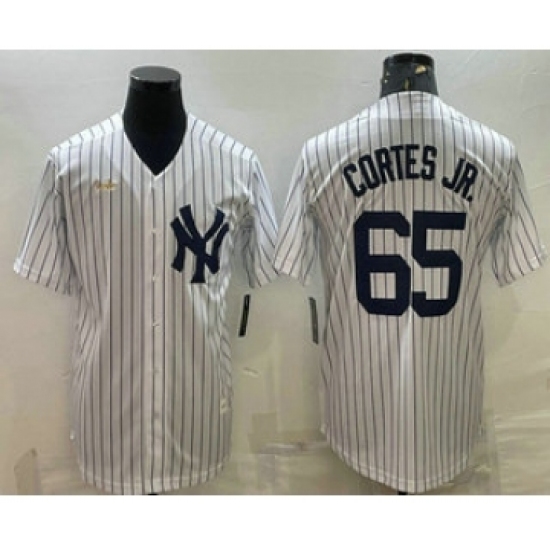 >Men's New York Yankees #65 Nestor Cortes Jr White Pinstripe Stitched MLB Cool Base Nike Jersey