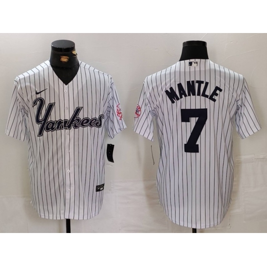 Men's New York Yankees #7 Mickey Mantle White Pinstripe Fashion Cool Base Jersey