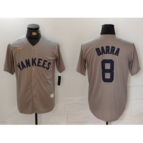 Men's New York Yankees #8 Barra Name Grey Stitched Nike Throwback Jersey