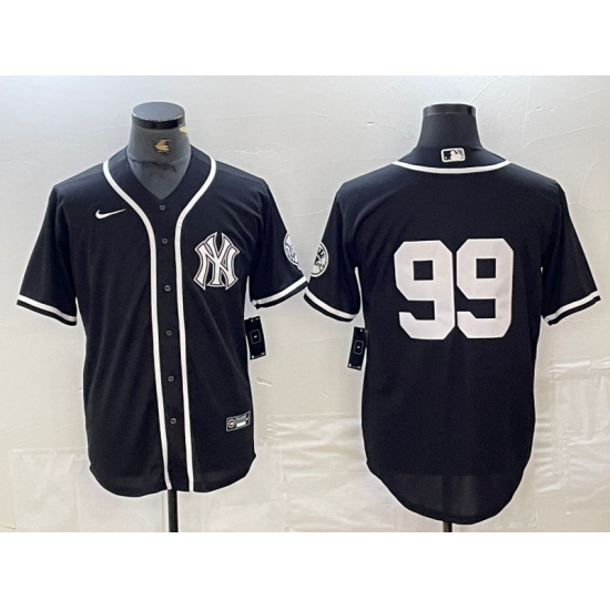 >Men's New York Yankees #99 Aaron Judge No Name Black White Cool Base Stitched Jersey