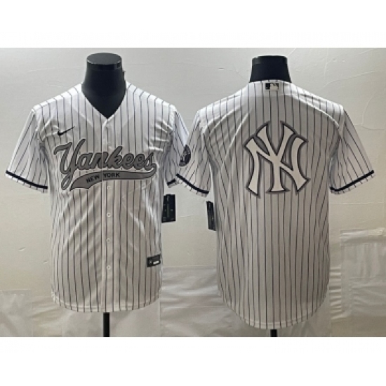 >Men's New York Yankees Big Logo White Pinstripe Cool Base Stitched Baseball Jerseys