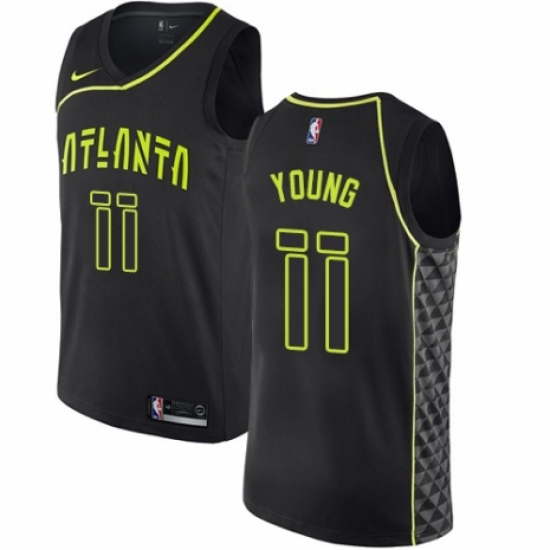 >Men's Nike Atlanta Hawks #11 Trae Young Authentic Black NBA Jersey - City Edition
