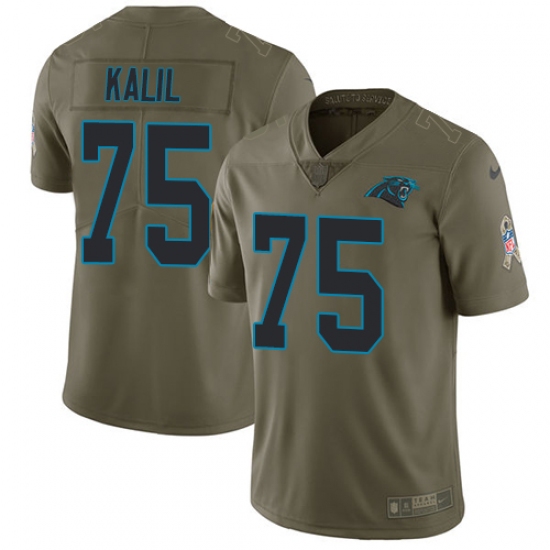 Men's Nike Carolina Panthers #75 Matt Kalil Limited Olive 2017 Salute to Service NFL Jersey