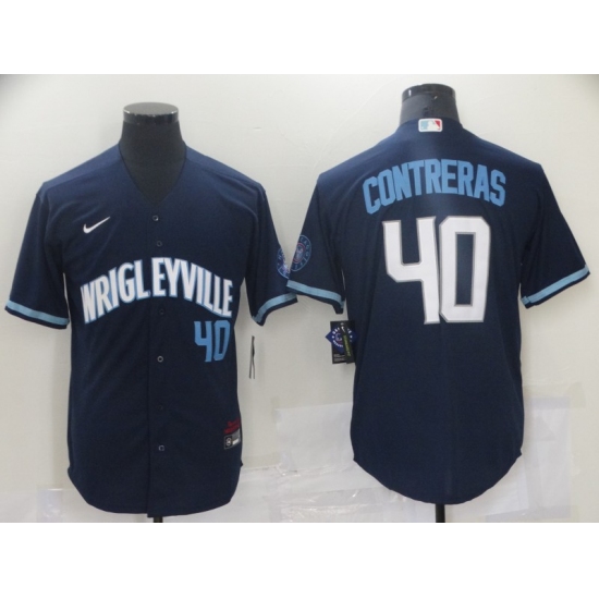>Men's Nike Chicago Cubs #40 Willson Contreras Navy City Home Stitched Jersey