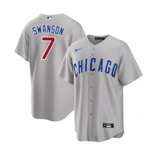Men's Nike Chicago Cubs #7 Dansby Swanson Gray Cool Base Stitched Baseball Jersey