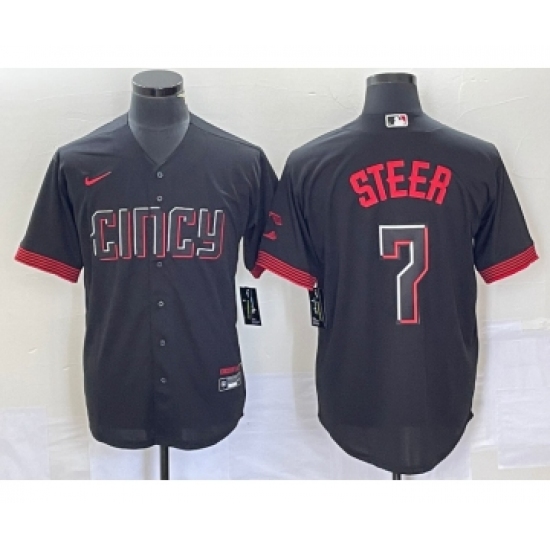 Men's Nike Cincinnati Reds #7 Spencer Steer Black 2023 City Connect Cool Base Stitched Baseball Jersey 1
