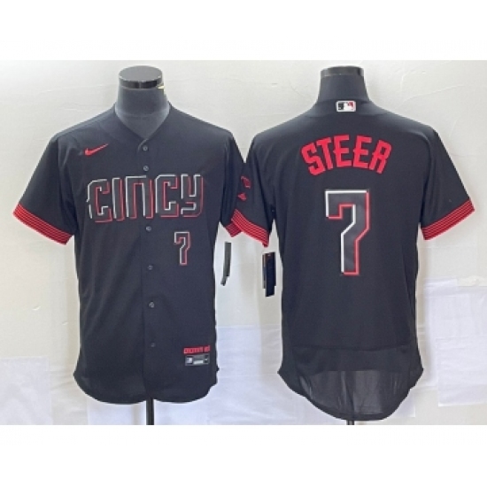 Men's Nike Cincinnati Reds Spencer Steer Black 2023 City Connect Flex Base Stitched Jersey 1
