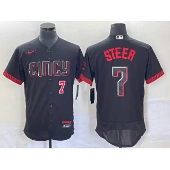 Men's Nike Cincinnati Reds Spencer Steer Black 2023 City Connect Flex Base Stitched Jersey 1