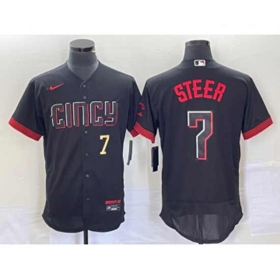 Men's Nike Cincinnati Reds #7 Spencer Steer Black 2023 City Connect Cool Base Stitched Baseball Jersey