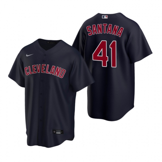 Men's Nike Cleveland Indians #41 Carlos Santana Navy Alternate Stitched Baseball Jersey